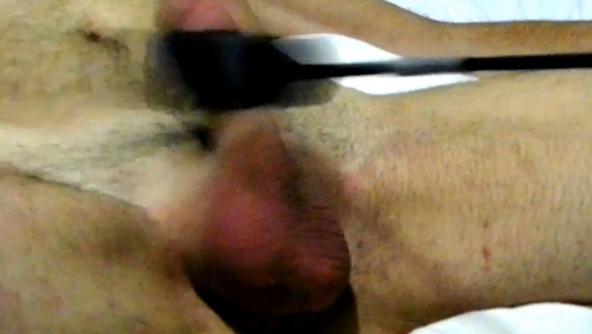 This is a very different one. I had just finished giving Bond a face down bound Whipping to his Ass, Thighs, Cock & Balls. His Cock & Balls got an extra dose with a split-tailed whip and had marks all over. He said he wanted to Cum. I said 'Fine, but I will Crop your already sore Balls all the time you are masturbating and until you cum!' Mean aren't I... :) So I got out a Leather Riding Crop and he laid back with his thighs in spreaders and I Cropped his Balls & Cock while he masturbated himself. It took him 6 minutes to cum and I beat his balls the entire time! They are Very Red by the end. His orgasm was very loud too... Enjoy! Lady M.