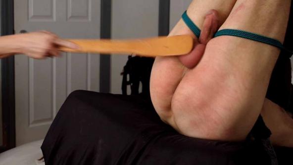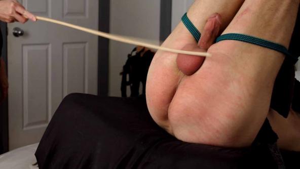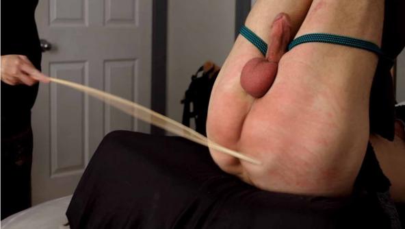 Lady M tells Bond to prepare room for long punishment session. Turns out to be about 90 minutes! This is the first of 3 videos that will come out of that day. Here Bond is bound and double gagged with legs back tied to ceiling. His Balls & Cock and being held out from his thighs with a wide bungee cord. The action starts off with Lady M using a Bullwhip all over Bonds Ass, Thighs, Balls & Hard Cock! This one has slo-motion sequences scattered throughout so you can see the strokes landing on those hard Balls! Crops, Canes, Straps and various Whips are all used to Bonds naked parts.