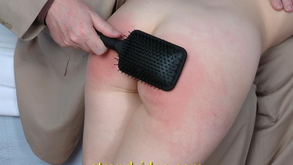 As promised the headmaster has called in the school doctor to examine Kami Robertson. After an extensive examination he finds nothing wrong with her except a propensity towards idleness. His cure for this is removal of her pyjama trousers and the application of a hairbrush to her bare bottom as she lays over his knees. Then kneeling on the bed, bottom in the air he really goes to town with the swats.