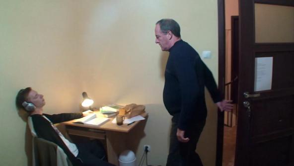 James is studying and falls resting because he is out burning the candle at both ends. Just getting into a nice rest when Tony wakes him by bursting a paper bag, He gets a lecture about his priorities. To make the point he gets a great set OTK, a cute little hairless butt that colours up very well indeed. No matter how much he struggles and protests his butt gets the treatment. A final warning and he gets back to his studies - although I imagine that sitting is a little uncomfortable.