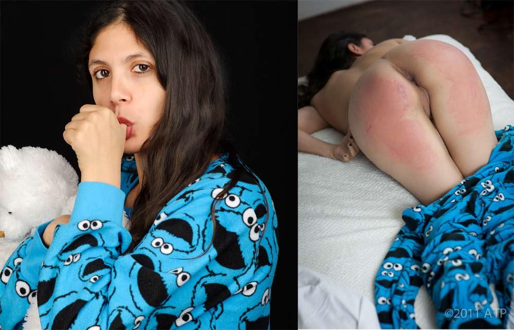 Shy is all snuggly in bed when Daddy pulls back the covers and announces that her day is starting with a spanking. Over his lap in her footie pajama's for spanking she goes, bottom jiggling with every swat until she is ordered to stand. Unzipped and pulled to her thighs she goes bare ass naked back over Daddy's lap for more hard swats on her juicy bottom and thighs. Every swat erupts as bright red punished skin covers her backside, wiggling and moaning as the pain builds. A wonderful way for a naughty girl to keep discipline in the front of her mind with a nice sore bottom that will last all day ! Domestic Discipline filmed in HD