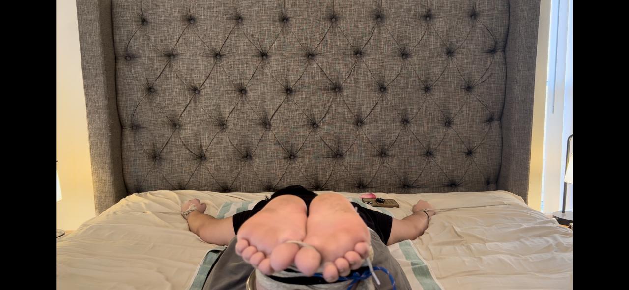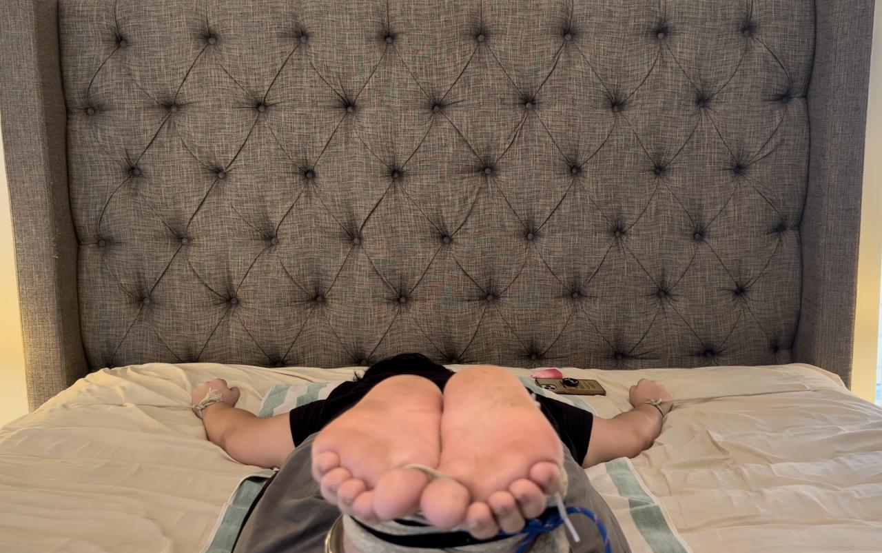 We kick off our 2023 season with a first time Bastinado participant in 19 year old Christina with her size 9.5 latina feet and soles. I met Christina on fetlife and after a few weeks of chit chat we decided to do a Bastinado session. Christina had never had her soles whipped so it was sure to be an experience and Master Fetish Legend did not hold back for her first session. She arrived in sneakers which are removed off camera and her ankles are bound in rope and leg cuffs while her socks remain on to begin the session. She’s warmed up with light strokes and lashes with her socks on for the first minute until her new master decides it’s time to take her socks off and see his new slaves sweaty feet and soles. Christina does an amazing job keeping her soles in position as she’s whipped repeatedly for to end the warm up portion of the session. The 2nd whip she’s beaten with proves to be a different sting and after 40 seconds of it, Christina even makes the comment ooohhh that one hurt. The camera zooms in on her sweaty dirty 19 year old soles and her master continues to whip them for another minute and a half before giving them a break. The angles of her thick sweaty soles are amazing and she does a great job keeping her soles in position. We bring the strap out to give Christina’s soles a different sensation and tie her two big toes together, as her master knows the whips she is about to feel are going to be more of a challenge then what she has felt so far. We also get even closer so you can see the details in her beaten 19 year old soles. She’s whipped on both sides to make sure no part of her soles are left clear and even told she has to be punished a little if she is going to be a full time submissive. She also spreads her toes as her soles are being whipped, much to her new masters delight. You can definitely tell Christina is starting to feel the Bastinado much more as the session gets closer to ending. Her sweaty beaten size 9.5 latina soles stay in position for the punishment, and she lets out a few groans in between the strokes of the whip. She is put in the spread tie punishment position for the final 8 minutes of the clip, and her 19 year old soles are whipped with little mercy for her first time. You can hear shrieks of pain following some of the strokes, as she does her best to please her new master and take the punishment. He breaks the bull whip out and punishes Christina with 10 lashes before he’s convinced she’s ready to end her first punishment session. The final 5 minutes are purely a test to see how ready she is her serve her new master. Her beaten cuffed tied slave feet are put in position to be punished for one more set. She’s made to count her stroke and thank her master while letting him know she is ready for the next lash. Her master saves his favorite whip for the end and it’s unlike anything Christina has felt so far in the session. You can hear her tear up in her voice as she being whipped for her masters pleasure. The sound of the whip cracking off her naked soles and the chains jingling after impact, is amazing. 25 merciless strokes to her sweaty dirty bound soles before her new master uses Her beaten soles to drain his balls and drenches them in his cum to end the session.