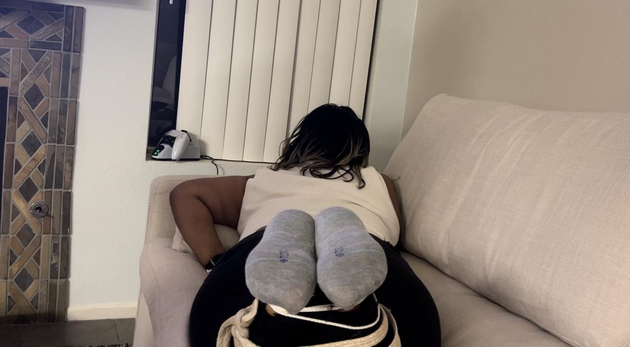 One of the most impromptu sessions to ever take place, Mia was actually in town and her master had finished up with a different submissive earlier in the night, but they agreed to meet up for this way after hours shoot, where Mia would have her sweaty size 8 soles whipped while on the couch, another first in studio history for Mia. She begins the clip being warmed up with lashes to her Latina soles with her socks still on before they are removed 2 minutes into the clip, showing off her naked stinky size 8 feet and soles. She’s reminded of her commitment she’s made to her master as a slave, and told her soles will be whipped as long as needed until her master is convinced she knows her role and place with him. Now warmed up, the thin whip is used to discipline Mia next. Her hands are placed behind her back, and the camera is moved closer to her soles to get better looks at her being punished. She’s whipped for close to 5 minutes, with her master telling her it’s for his pleasure and that there is no choice for her but to endure the lashing until he is satisfied with her efforts completely. She gets a short break, and from the very first stroke of the whip in the next set, she feels the sting of her master and knows she must keep her soles in position for him. He praises his slave during the beating he’s giving her, acknowledging her as one of his favorites to punish. The bull whip is next up for Mia and the first mash makes her cry out in agony, as this was only her second time experiencing its sting. She’s punished for 3 minutes with it and does an amazing job showing off elite tolerance after each lash. Mia then starts to please her master with her hands whole enduring the whipping, a skill very underrated by any submissive. The camera is moved back for the end of the session, where Mia will face the thin whip and the bull whip each one more time. The thin whip is first and her tender beaten soles are at the end of what they can take so late into the night, as Mia has now been punished for over 20 minutes. It does a number on her slave soles, to the point it even satisfies her master. The bull whip is next, and Master Fetish Legend ties her two big toes together, then whips Mia repeatedly to start out her final set of the session. It’s a severe lashing that few slaves can tolerate, as she’s whipped into submission, showcasing Mia’s elite ability once again to serve her master. More Mia coming!