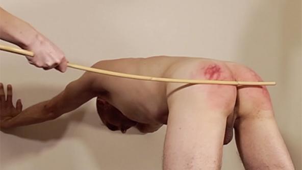 Cathrine is learning to spank, strap and cane from Miss Mathews and the Plumber must take it all. Over each of their knees, the poor fellow is strapped and paddled until his bottom is red and bruised, before being sent to the wall for a hard, stingy caning on his hopelessly battered bottom.