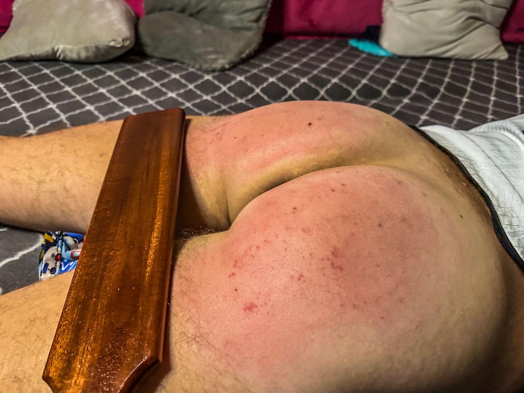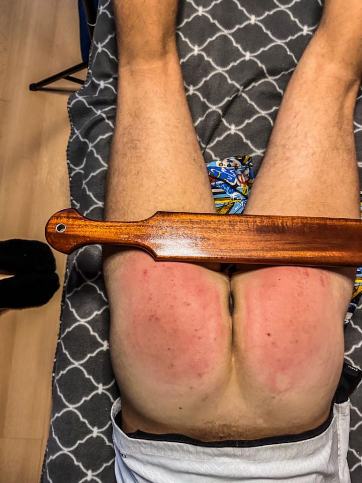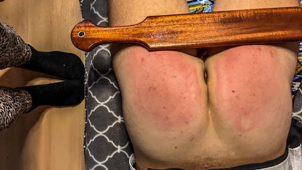 Jirsus2 convinced his strict lady to let him watch his favorite team’s match on the big TV in the living room. Madam D agreed… until his team suffered a tough 4–1 defeat. And since results must be faced as a team, Madam D decided to take action immediately. She ordered him to fetch several paddles and made sure he clearly understood that every mistake counts — especially a loss like that. A football night turning into a memorable post-match “analysis.”