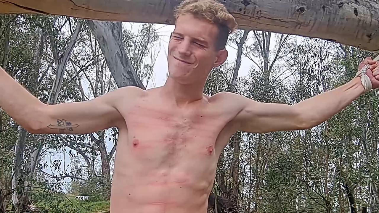Nathan gets a great flogging with the cane in this clip. He is suspended and the cane is laid across his chest and belly, and a few really low ones for good measure. Nathan can take a good flogging but this one has him to the limit as you can see on his face. A great flogging