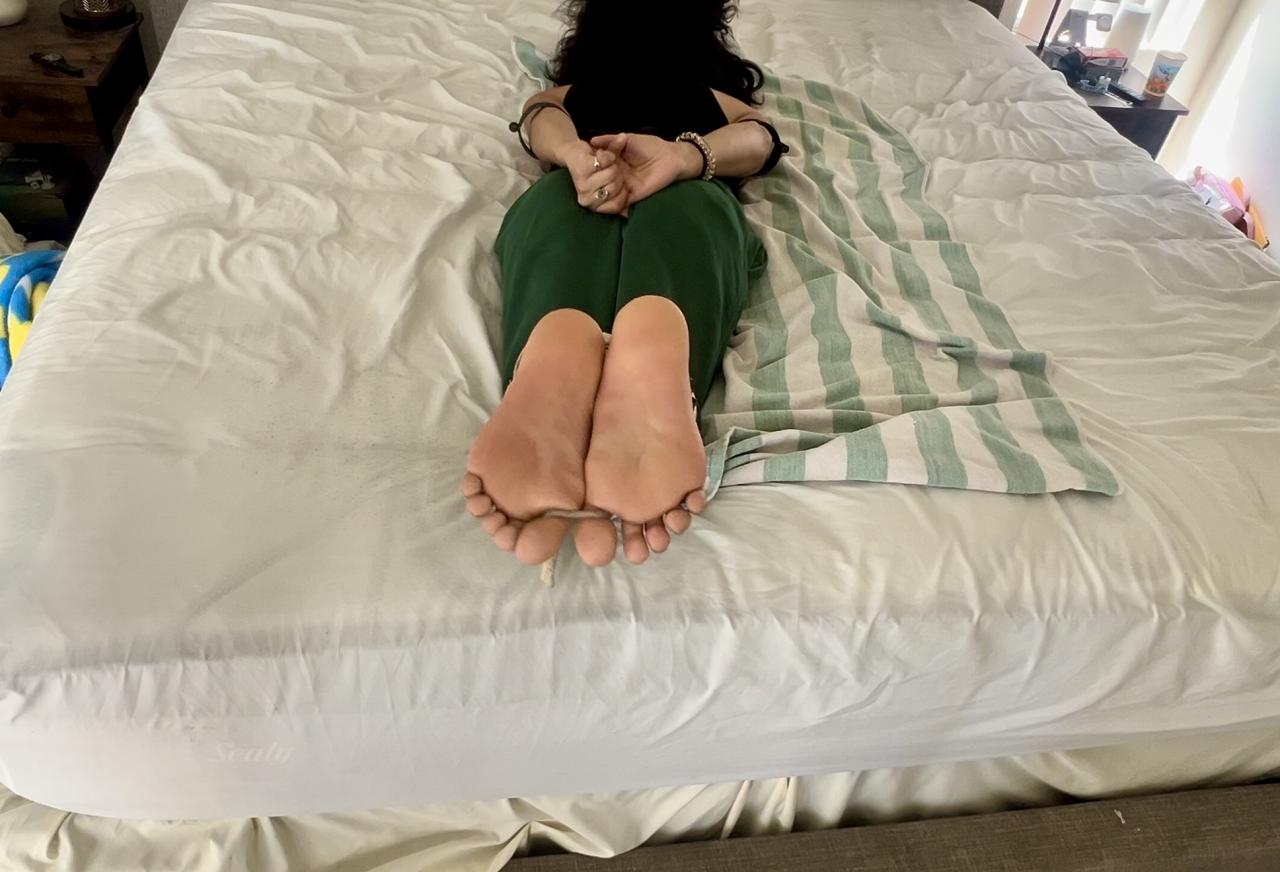 After her size 7.5 Latina soles were whipped earlier in the day, Peach returns for the next portion of her Bastinado day with Master Fetish Legend. Her ankles are already shackled, and her sneakers with no socks are removed immediately, leaving her very stinky soles naked and ready to be punished. He gives Peach a few lashes, before deciding her arms need to be shackled as well for better bondage. Helpless and at her masters mercy, her soles are beaten with the thin whip with little warm up, as her master pleasures himself while punishing his slave. After two minutes, Master Fetish Legend gives her a short break, and switches the handcuffs in for the steel shackles, so that he can punish Peach without her being able to squirm around as much. Hogtied, she has no choice but to keep her naked soles in position as her master whips them and lets her know she’s going to be punished with a few more whips before he uncuffs her. Topless and restrained, Peach tries to play with herself while she’s in the hogtie position, and her master shows little mercy to her already tender beaten soles, punishing them with the blue whip until he’s satisfied that his new slave has learned this important lesson of who is in control. More Peach still to come!