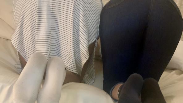 Two of the best submissives to ever serve Master Fetish Legend finally collab with each other for the first time in this lighter themed duo Bastinado session featuring Solequeensworld and her size 9.5 Ebony feet and soles, along with Savvage and her size 7.5 mixed soles. The clip begins with both subs on their knees bent over with their socks still on, ready to please their master. He warms both up with light lashes in the first minute with their socks still on, before taking them off and continuing the warm up strokes of the whip to their naked bare soles. After two minutes, they receive a break, where their master ties both of their ankles up to add a little bondage to their Bastinado session. The thin whip is the next device used on each of them, to add sting to their experience which is especially noticeable on Savvage’s tender soles as she had them whipped severely just a few days before this session. They both wrinkle and scrunch their soles as the lashes continue from their master in this 2 and a half minute whipping they take before they receive their final break. Both women have their two big toes tied together in the final set of the session. He whips both of them, switching off on each pair of soles for over 3 minutes before draining both of their soles in his built up nut from the festivities. Not the most extreme clip, but still great angles of their soles! More of both still to come!