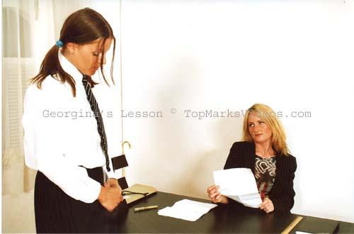 Featuring Georgina as Georgina Springthorpe and Natasha as Miss Flanagan Miss Flanagan, the school secretary, has long wanted to teach cheeky Georgina Springthorpe a lesson because Georgina and her pals are forever mocking her Irish accent. Finally, her chance has arrived. The cheeky young miss has been sent to see the headmaster by the geography teacher, but he is away at a meeting, so she seizes the opportunity to thrash her young tormentor. The quality of this vintage video isn't up to the modern day HD as it's been taken from our archive VHS but we have have had many requests to add this to our Clips4Sale. The video "Georgina's Lesson" (2001) is a short erotic corporal punishment film written, directed and produced by Cliff James