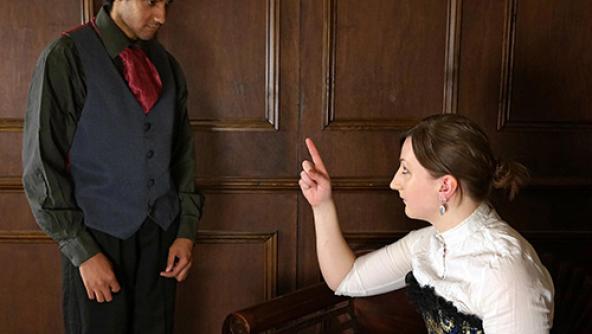 New male spanking performer David Weston takes an over the knee spanking from strict governess Pandora Blake. She chastises him for his poor behaviour while delivering a firm hand spanking on his bare bottom. Suitably punished, and with his aching bum bright red, David is forced to stand half-naked to display the results of Pandora's discipline.