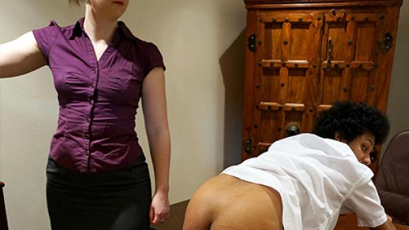Pandora Blake plays the strict headmistress in this modern day corporal punishment scene. David Weston is the naughty schoolboy waiting outside her office to find out what his fate will be. He enters, and is immediately scolded for his scruffy school uniform, poor posture and insolent attitude David is the perfect brat, cheekily protesting his innocence and refusing to take responsibility for his behaviour. His stern headmistress must resort to tougher measures, an old-fashioned spanking with the slipper. Sulkily, the David bends over her desk, gripping the far side of it tightly and displaying his gorgeous bottom in white school underwear. When it's clear the message needs to really hit home, Pandora tells the errant schoolboy to lower his boxers and submit to a much harder whacking with the slipper on his bare bottom. David has never been slippered before - will the experience change his ways?