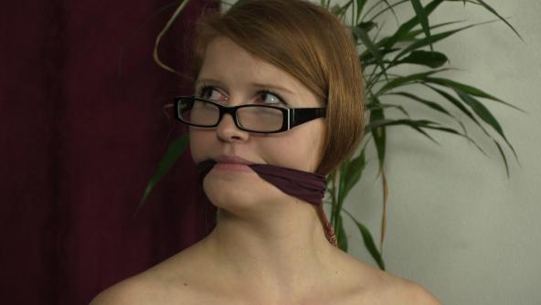 Jennifer has caught her niece wearing her lingerie, her crotchless panties and even her buttplug. She has spanked her with a hairbrush and her hand and now strips her down to wearing nothing but a pair of blue stockings and high heels. She makes lavender sit down in the chair and picks up some rope. She winds the rope around lavenders naked breasts and the chair, binding her arms at the same time. Then she picks up a silk scarf and gags poor lavender with it so she cannot make too much noise. She walks out of the room, talking to lavender's Uncle on the phone telling him what lavender has done now. Lavender struggles against the rope when she is left alone but doesn't seem to be able to wiggle free.