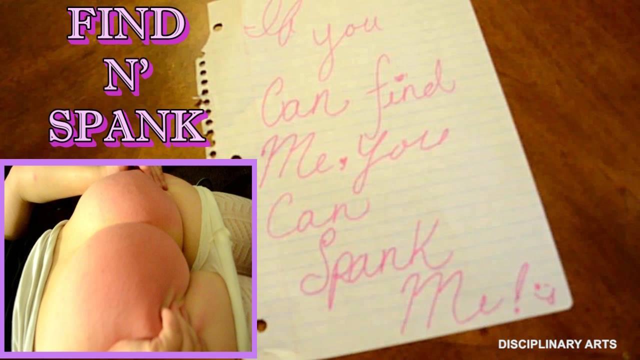 In Find N Spank, a BRAND SPANKING NEW POV video from Disciplinary Arts. Kyle comes home to find a note on the table which says ""Find me and You can Spank me!"" from his wife Johanna Sullivan. He plays a short game of Hide and Seek, finding his giggling wife hidden, and proceeds to pull her over his knee and playfully but firmly spank his purposefully-bratting wifes bare bottom as she teases him and squeals. Her bottom is turned bright red and stingy as his hand firmly paddles her little bare butt. A very sweet hug follows! A VERY SWEET YET HARD POV SPANKING VIDEO!