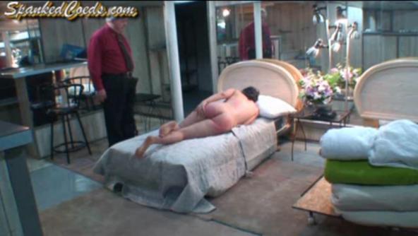 Jenna continues to be punished in this 45-minute punishment session. This is Part 2. Here her stepdad makes her strip naked and lie back on the inspection table for a vaginal inspection and 50 strokes of the 3-tonged tawse as well as taking her to her bedroom to be made to kneel on the bed and strapped with 100 strokes of the Behavior Attitude-Adjustment Strap, and then back to the living room to bend over to be paddled. "NOTE: WMV-11 or WMV-12 may be needed to view these videos."