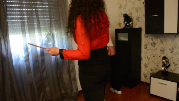Claudia punishes her boyfriend for not having cleaned the house. impressive corrective where she goes changing of candlesticks and reed, where each blow is getting stronger, and he agonizes of pain. punished without mercy.