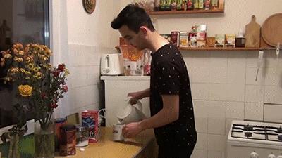 What should be a simple task turns to disaster when Mark spills water everywhere when making a coffee. Suddenly in trouble he finds out it gets worse as the first thing to hand is the large wooden spoon. This, as anyone who has received it will know, really packs a sting. His jeans are soon down and he gets a good set on the underwear. Then when his bare ass is being spanked dad plays a cruel trick on him and reverses the spoon for a few strokes. This makes a noise but is easy to take. Then he spins it round again and catches Mark unawares as the spoon cracks down. A great clip with a twist in it for Mark.