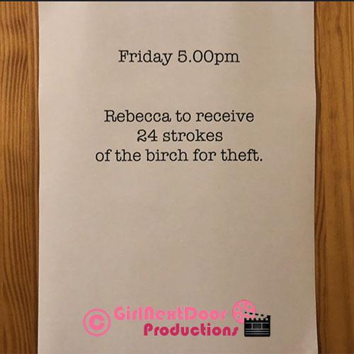 Rebecca was caught stealing from a charity collection, and a more serious transgression I cannot imagine! The punishment is a birching at 5pm, and that time has come. Stripped to the bare, the schoolgirl endures a hard whipping with a birch bundle, screaming and shaking whilst I stripe her thieving little bottom. This is poor Rebecca's very first birching, very painful but also just. Filmed in four angles. Part 1 of 3