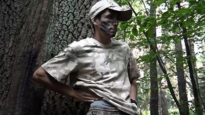 Kristopher was supposed to wait to be collected from cadets but he sneaked off into the forest and so he could jerk off. He thinks he is invisible and is starting to enjoy himself when he is caught. No messing around he is spun round against the tree and spanked there and then. It is a bit of a conflict for Kristopher as his hand strays to his dick a few times while he is spanked. Good to see that he is getting two things out it, a sore ass and excitement. A short sharp lesson in the great outdoors for this horny guy.