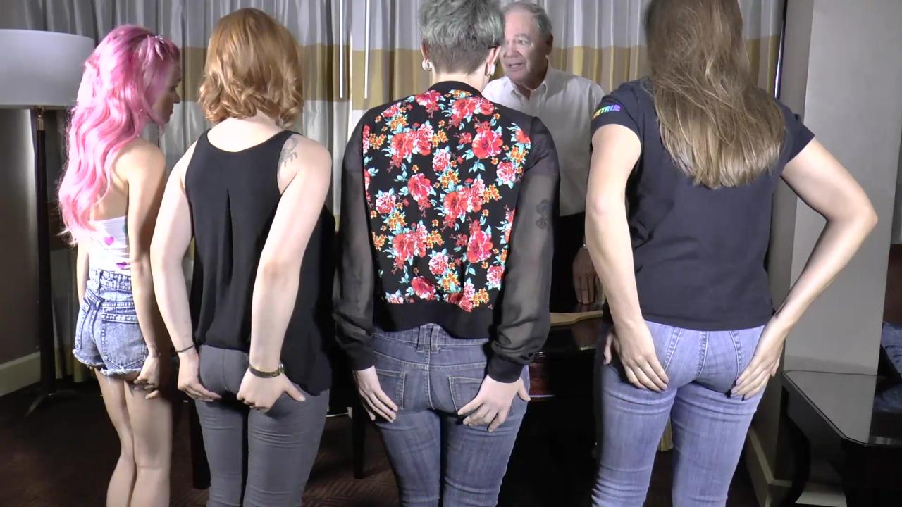 Stevie Rose, Reyna S.t Clair, Devon, Kiki Cali, bend over, tight pants, jeans, sore bottoms, naughty girls, punishment, discipline, butts