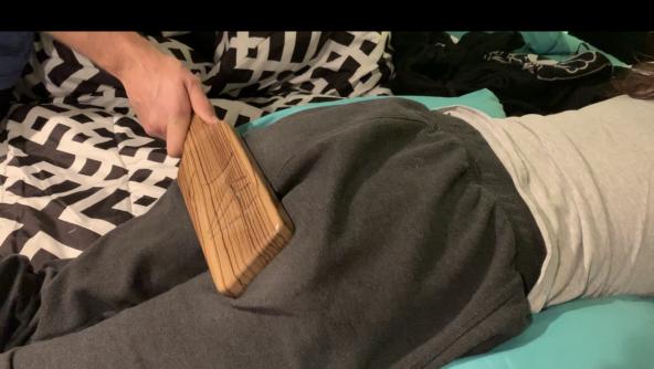 I had a stressful day and was being extra bratty and needed my butt beat! I had a warm up with the bath brush and paddle over my pants before they got pulled down along with my panties. I got a hard paddling that left me crying and bruised with a swollen bottom.
