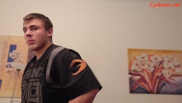 Tylers conduct on the pitch has not been to the satisfaction of the team. After a brief chat with the manager the punishment is quickly decided. Tyler is summoned to the managers office for a humiliating over the knee spanking-lets hope this will correct his attitude!