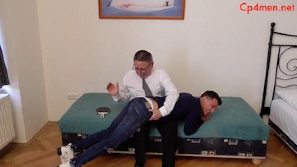 Time and time again Joshua has been warned about getting home late but seems to take no notice. He’s been told that next time he will get a spanking and that promise is about to come true! Sir wastes no time in pulling him in to the room by the ear and straight over to the sofa. There he proceeds to give a good old fashion over the knee spanking. He Begins on jeans then underwear then eventually bare. Sir ends the punishment by giving him 20 with the ping pong paddle-that’ll teach him!