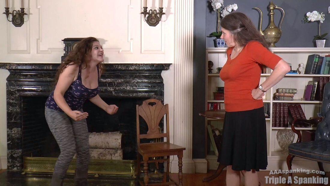 Anna has been deliberately confrontational to her mom (Miss Bernadette) as she is fed up with the restriction she faces at home even though she is in her final year of school. None of her other friends have these issues, she thinks. Things come to a head when Anna is caught with her dirty shoes up on the antique furniture, showing the usual serious lack of respect she gives her mom when asked to behave a little more civilly. Anna screams and hurls a foul-mouth tirade, and is out of control until mom slaps her several times and takes control of the situation. They struggle but mom takes Anna over her lap for a long overdue spanking and this will be without the dignity of her leggings, or panties, whilst she receives a bare bottom hand spanking. Mom has noticed that Anna has a new tongue piercing, which is totally against House Rules, and of course, Anna fires a tirade of more foul-mouthed curses. A nearby hairbrush is used against her exposed cheeks and it soon turns her very sore bottom a deep, shameful burning crimson. Anna is far more sorry now, but her earlier behavior earns her a mouth soaping upstairs in the bathroom. Anna is dragged there by her ear and given a horrific mouth soaping that has her spluttering, retching and pleading with mom that she has learned her lesson. This punishment is only over when mom decides it is, being a reminder that House Rules will be respected whilst under this roof! Warning: This film contains foul profanities, multiple face slappings, and tears during a harsh mouth soaping... do not watch if this type of stern maternal discipline offends you!