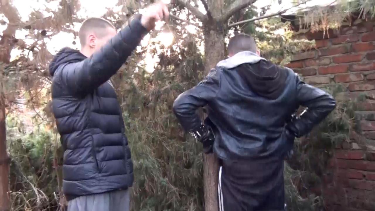 Leon has been out and around on a scooter which is OK, the fact that it is Philips scooter and he has taken it without asking is not OK. When he gets back Philip is waiting for him and is far from happy. Dragged over to a near by tree Philip sets about spanking the lad as a lesson in manners. there is no messing around here, a good warm up set on the trousers and then Philip makes Leon skip his underwear and goes straight for a bare ass spanking, there and then outside. Looks like Leon will remember to ask before he borrows the bike again.