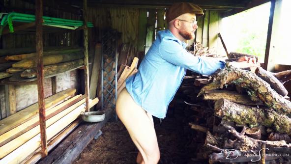 It takes a lot of work to keep a big house running, and any good housekeeper knows the key to success is keeping the servants in line. When Theo the garden hand neglects his orchard duties, then, there’s only one thing for it! He’s hauled back into the woodshed and made an example of, with his sound strapping carried out right where any passer-by could see it. When it’s done he’s not permitted to hide his sore backside straight away: instead Blake has him keep it on display for five full, excruciating minutes, his cheeks as red as the apples he neglected to pick.