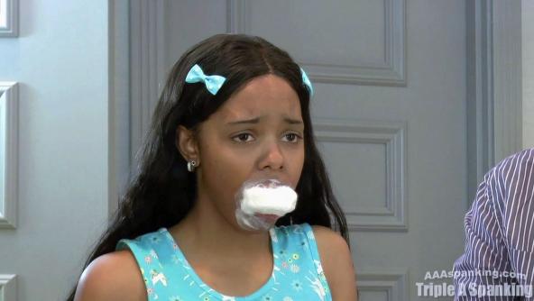 Riley Haze is one very naughty young lady that is about to suffer the consequences for making her poor Mommy cry. Her stepfather, John, arrives home and is upset at seeing his wife sobbing after Riley had been swearing, using filthy, foul language including the dreaded "F-Word". Riley is chastised, he knows that she is not of his loins, but he has treated her as his own girl making sure she wants for nothing. So now Riley is told that He will make sure she is suitably punished for her nasty behavior and potty mouth... and when this is finished, she must apologize to his poor distraught wife! He takes her over his lap for a hard man-spanking that a now more contrite Riley has not felt in quite a while across her bare buttocks. Her cute panties are pulled down, making her feel highly embarrassed and exposed. During the spanking, she had been given a wooden hairbrush to hold, to increase the anticipation and dread that this implement brings to disrespectful young ladies. She soon feels just how much this brush stings as he applies it to her sore, throbbing bottom. The final part of her punishment takes place in the bathroom as her nasty, swearing mouth needs to be cleaned with repeated soapings. The frothy suds are applied so that she really tastes the torment of the cleansing bubbles. Now, and only now, once her filthy mouth has been thoroughly soaped, can she really apologize for her recent foul behavior! This is a great domestic discipline film that Riley's many fans will enjoy immensely!