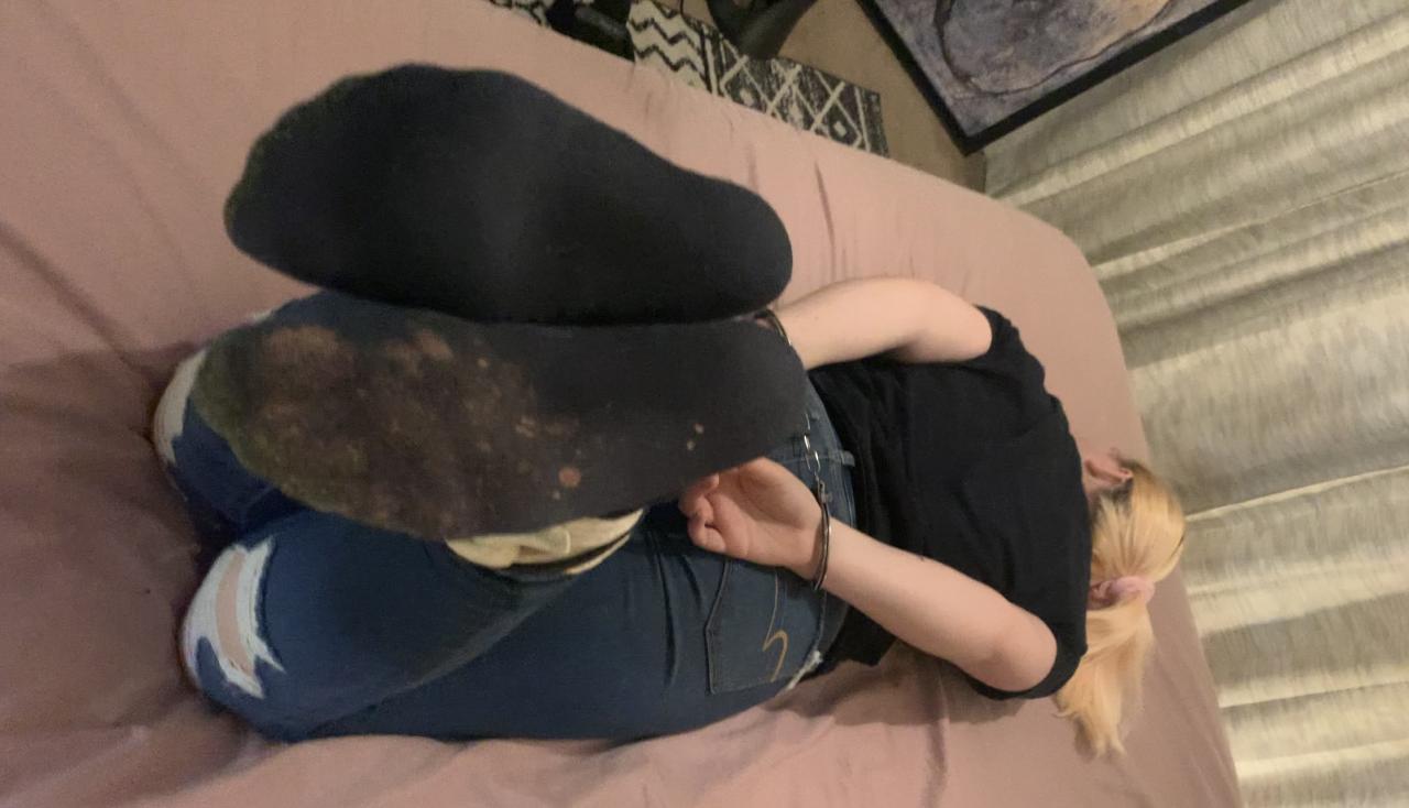 Wren makes another appearance in the studio, this time coming to receive Bastinado immediately after getting off work for the first time. Her huge 19 year old size 11.5 soles are so sweaty and tender and they are to be whipped unlike any session before this. Wren needed her ass not to be marked as she had a spanking session planned later that week, so we agreed it would be her huge naked bare feet that would take the beating her ass would normally receive. Her clips starts with her in handcuffs, ankles bound, and her sweaty work socks still protecting her giant soles. She’s given 13 warm up strokes, before her master decides it’s time to get the show started and remove her sweaty socks. She’s given another 30 seconds of warm up before her soles are whipped with the thin whip for the rest of the session. Her breaks are shorter between lashes than she is used to, so you can see her struggle to keep her soles in position at the beginning. Different angles show Wren and her perfect long arches being whipped with little mercy as Wren tries her best to stay silent during the punishment. The lashes are continued repeatedly as she lays there bound and at her masters mercy. Her hands stay perfectly in position while cuffed, allowing her master to reward her with a small break in between strokes. At around the 5 minute mark, the lashes slow down, but the severity level of then ramps up. Wren has her size 11.5 soles zoomed in on as they continue to be whipped like they’ve never been before. Her two big toes are tied together to continue the Bastinado with better bondage. She begins to get more accustomed and starts spreading her long toes after each stroke. Admittedly it was hard to keep myself together whipping these perfect huge long slender size 11.5 19 year old feet for almost 15 minutes continuously and harshly. She did an amazing job taking the punishment and this session would be the last one between us for almost 10 months!