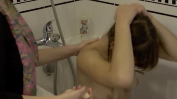 Marie and Rose have been sent to Miss Mathews to learn proper manners, and fail miserably. Rose has been smoking, so now she gets a bath and a stingy punishment. After washing the stink off of her, Miss Mathews pulls the young schoolgirl close, holding on to her tightly whilst delivering a hard handspanking on her tender wet skin. Poor Rose is instantly regretful, but the teacher isn't yet finished, and she finishes with a bruising OTK spanking. Part 5 of 9