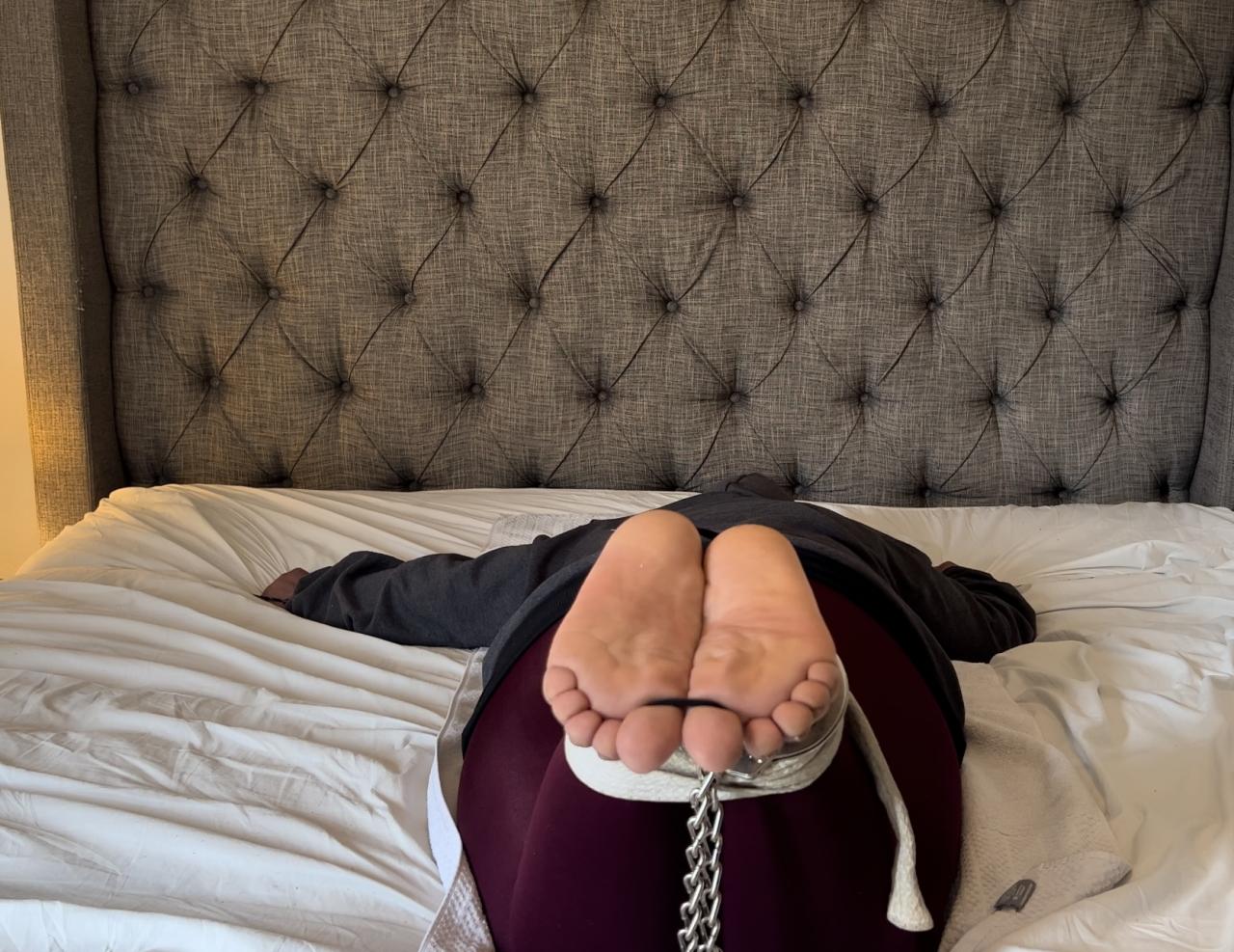Latina submissive Lucy returns with her size 7 stinky sweaty thick BBW feet and soles for what would end up being a very short and disappointing session with her master. She had been working all day and said her soles were sore, but she still thought she could handle a session. The short clip begins with her bound in the spread tie punishment position, with her stinky soles already bare, and her two big toes tied together from the start. From the very first stroke, it’s clear Master Fetish Legend is fed up with his slaves poor communication and decides it’s time to discipline her. The thin whip punishes Lucy for over a minute and a half before she needs her first break of the sesh. You hear the chains and shackles jingle as her master continues to punish her before she uses her safe word for the first time ever in her tenure as a submissive. There was a lot of discussion after this sesh on if Lucy would continue on as a submissive. Stay tuned ????