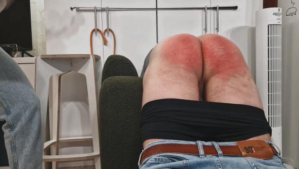 f/m spanking, paddling, strapping, blonde, hard, domestic discipline, corporal punishment, femdom, mistress, red ass, amateur, jeans