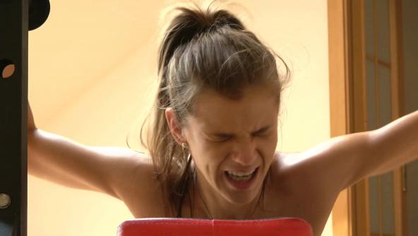 The nasty leather whip has persuaded the unruly little slut to continue with the ordered weight training. But soon she resists her tamer's instructions again. This time her beautiful muscular back is maltreated with tough whip lashes and marked with welts. In the next video her unruliness is broken to such an extent that her master can shove his now swollen cock into her naughty mouth.