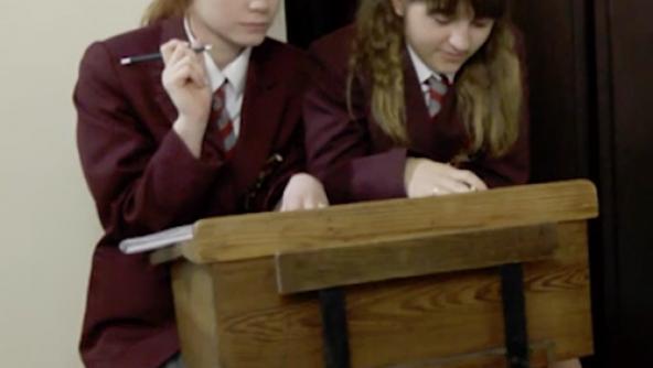 MP4 version: www.spankinglibrary.com/clipdetails.php?id=10709 Rose and Alice look positively studious at the start of this clip, sitting at their desk together. But is Miss Mathews satisfied with their efforts? She is not. Rose gets the ruler on her hands and, for poor Alice, it even worse - a bare-bottom spanking culminating with a good slippering. Part 7 of 11