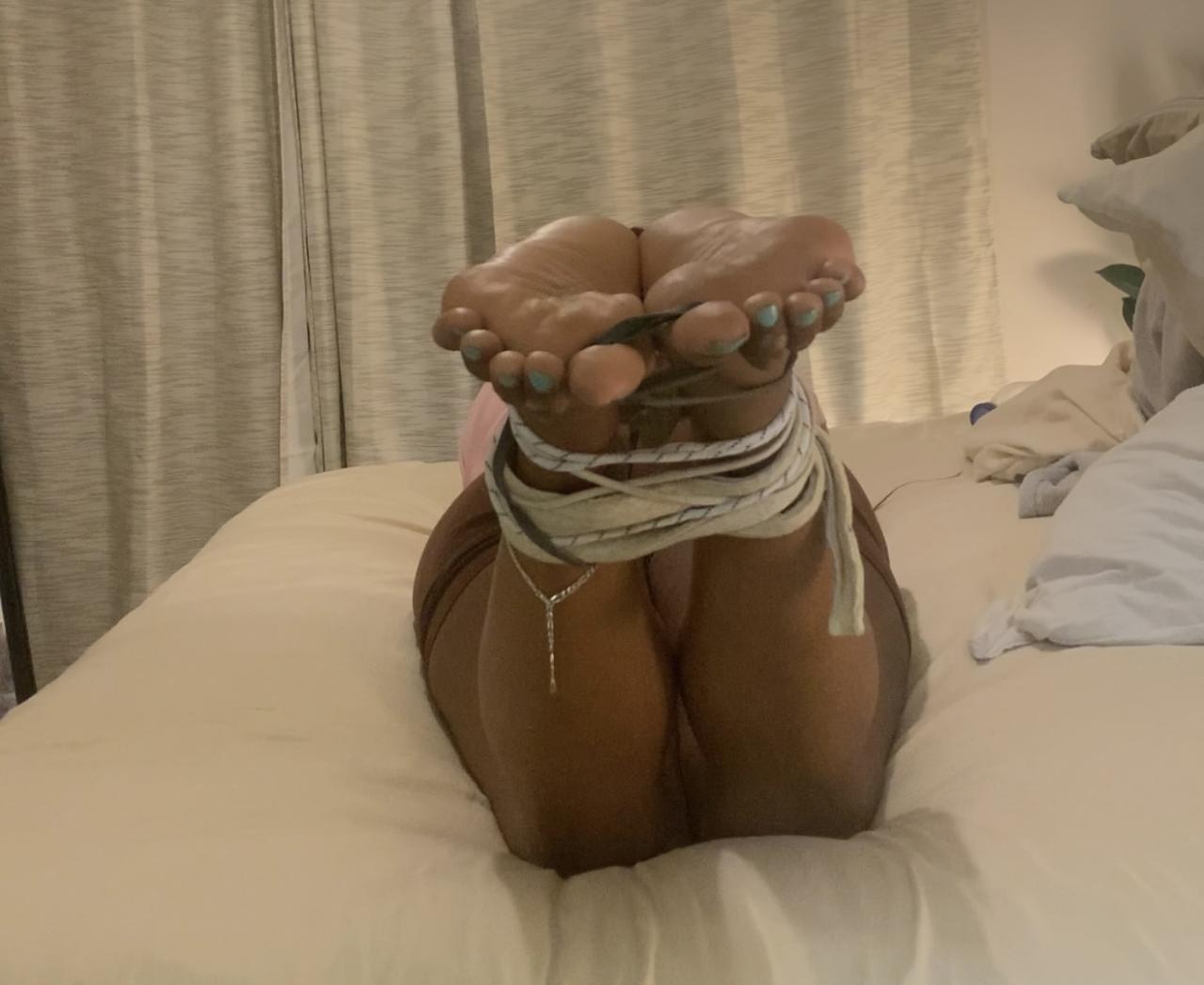 KC and her huge Ebony size 12.5 feet and soles return for a late night Bastinado session with Master Fetish Legend. She arrived to the session in sandals, so her ankles are bound off camera and her naked bare soles are warmed up for 2 minutes, as she giggles in between strokes of the whip, before Master Fetish Legend ties her two big toes together for her next set of strokes and uses the thin whip to punish KC. He makes sure that some of the lashes are spicy, hoping that KC will learn the lesson to not wear open toed shoes to the sessions anymore. She comments how it is ironic that she laughs when she is in pain, a good characteristic to have for any submissive serving Master Fetish Legend. After 3 minutes, KC receives a short break before the session continues. Though the vibe is very loose and playful, KC’s size 12.5 Ebony soles are beaten perhaps more severely then they have ever been before, with the lashes affecting her ability to keep her massive soles in position as they are whipped. Her master lets her relax her legs, making sure she knows the whip may now wrap Around to the top of her foot as a result of the position she is choosing to place her soles in. It’s certainly the most challenging of all the Bastinado sessions KC has faced so far, as her soles continue to be whipped for wearing the wrong shoes to the session. You also get great angles showing off just how long her arches and legs are. Master Fetish Legend continues to show little mercy to her big sensitive soles, whipping them and telling KC that she knew she would be punished for this offense. Though the theme is mild, the whipping KC’s big Ebony size 12.5 feet and soles take in the clip is very elite, especially for a submissive with such big feet. More than impressed by her efforts, Master Fetish Legend unloads a nice built up nut all over her wide massive soles, attempting to cover each wrinkle with his load. More KC still to come!