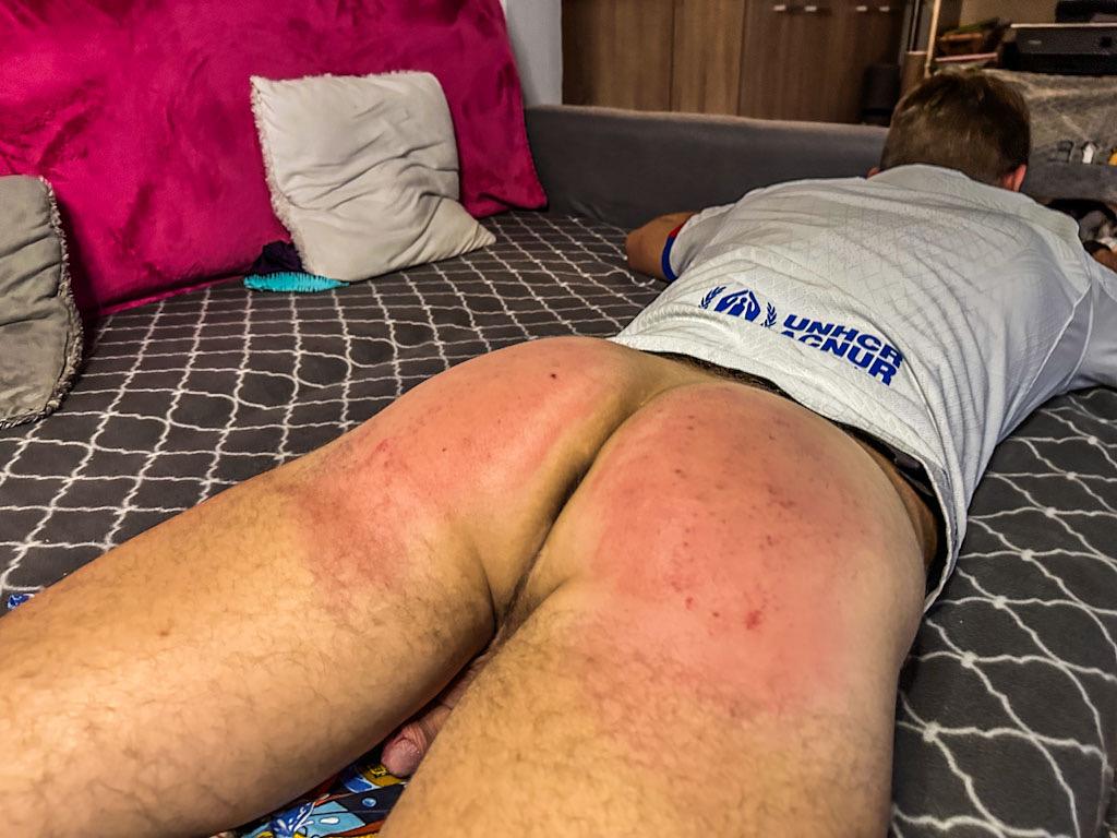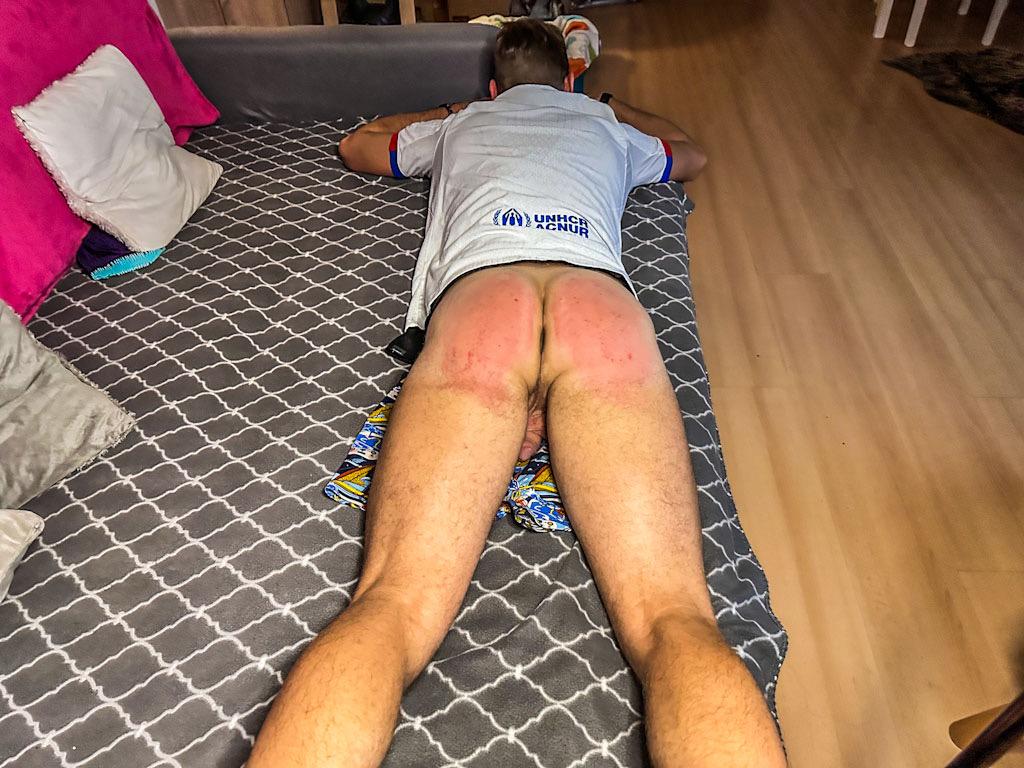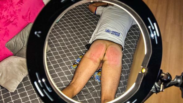 Jirsus2 convinced his strict lady to let him watch his favorite team’s match on the big TV in the living room. Madam D agreed… until his team suffered a tough 4–1 defeat. And since results must be faced as a team, Madam D decided to take action immediately. She ordered him to fetch several paddles and made sure he clearly understood that every mistake counts — especially a loss like that. A football night turning into a memorable post-match “analysis.”