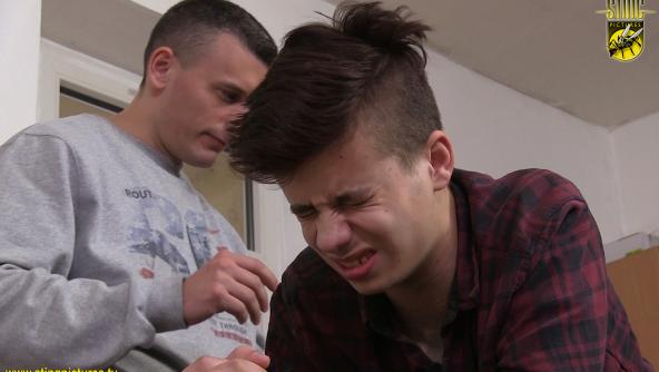 Produced on 25/02/2020 Running time 00:16:00 Size 1.13 GB Dexter had a pizza waiting at home and he was looking forward to getting back to eat it. Its been a long day and now he needs rest and sustenance. He hadn't counted on one thing though and that is his younger flat member, Austin. He'd seen the pizza and although he knew full well it was Dexter's had decided to eat it himself. On arriving back of course this didn't make Dexter a happy man! This has been happening far too much of late so Dexter decides to take the matter of Austin's foodstuff pilfery well in hand. The boys going to get a good spanking! After, to make sure his rounded bare bottom is well roasted, there must be something flat, wooden and painful in the kitchen drawer to finish off with. Not such a tasty slice now!