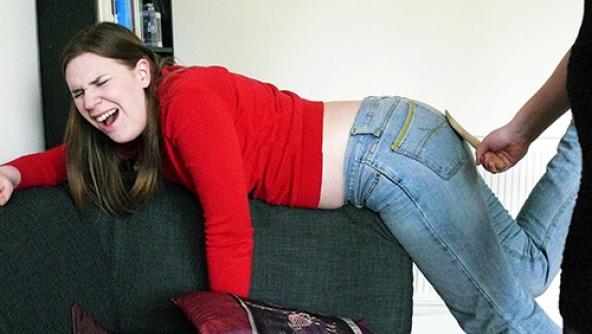 wooden spoon, alex reynolds, pandora blake, jeans, denim, domestic, bend over, bare bottom, wood, hard, cat, punishment